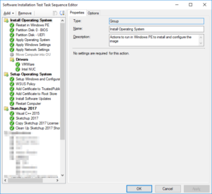 For the past few months, I’ve been struggling to deploy Sketchup 2017 with SCCM. 2015 seemed to deploy much more smoothly, despite having to implement a few kludgy workarounds. But no matter what I tried, 2017 would fail during a task sequence with the dreaded 0x80004005.